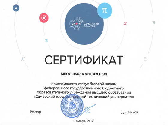 C 2021 года наша школа является базовой школой Самарского государственного технического университета.