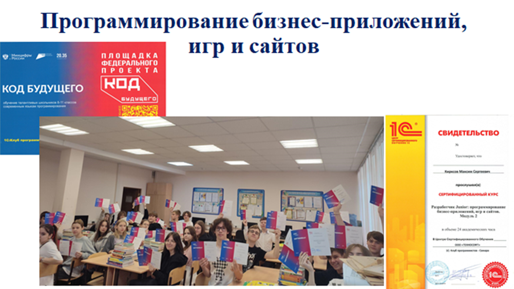 В августе 2025 года по поручению Губернатора Самарской области в 100 школах региона были созданы классы «Российские технологии». Основание для отбора в программу стали результаты ГИА наших выпускников по предметам «Математика», «Физика» и/или «Информатика», а так же опыт Школы по преподаванию предметов на углубленном уровне.